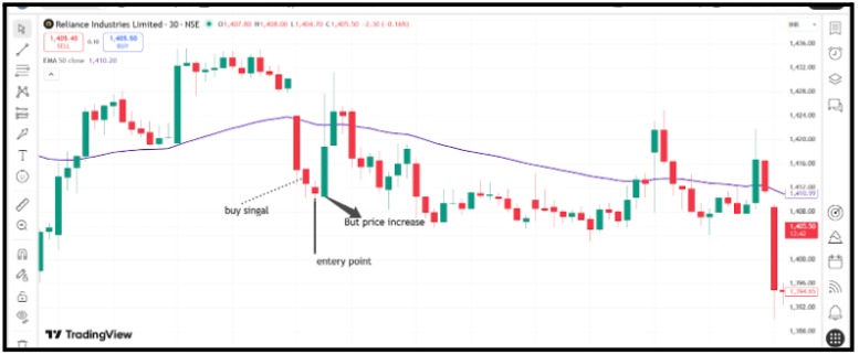 The 50 EMA becomes useless when the price moves in a range (no clear trend), or Sudden News by the RBI or other big authority Can Destroy EMA Signals in Seconds.