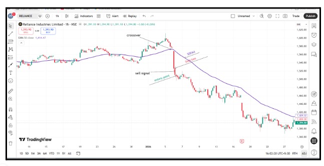 It works well in trending markets and is widely used in stocks like Reliance Industries and indices such as Nifty 50.