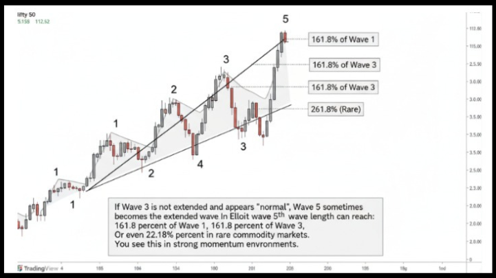 Note: Wave 5 is the final push of the trend, and because it often runs on fading momentum, it carries a higher risk of sudden reversal.