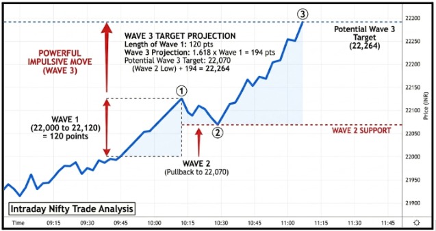 | Wave 2 | Pullback to 22,070 |