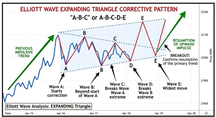 Let’s understand the concept of the Elliott wave expanding triangle in detail.Â