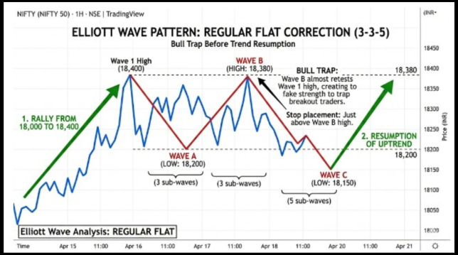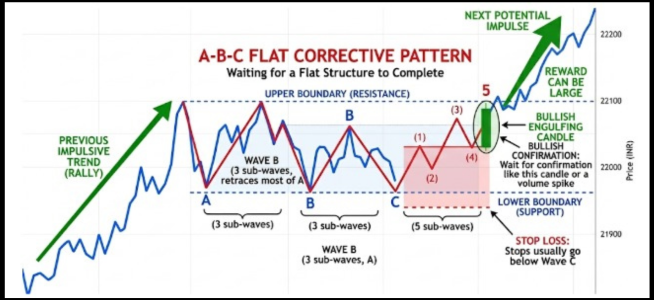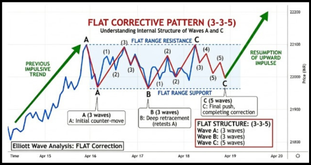 Flat corrections appear frequently in index markets such as Nifty or Bank Nifty after a strong rally.