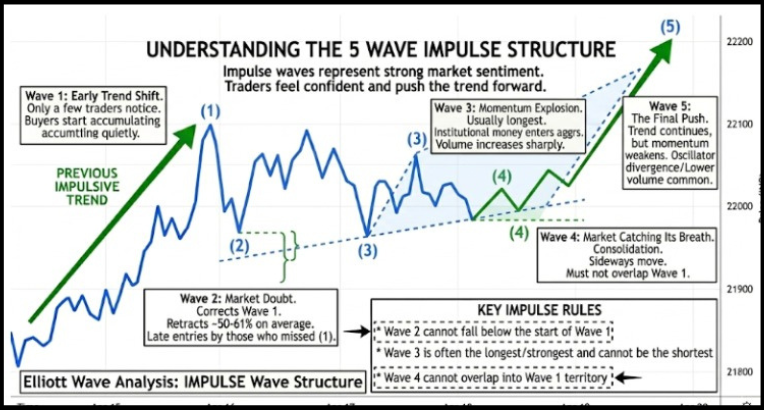 Impulse waves represent strong market sentiment. Traders feel confident and push the trend forward.