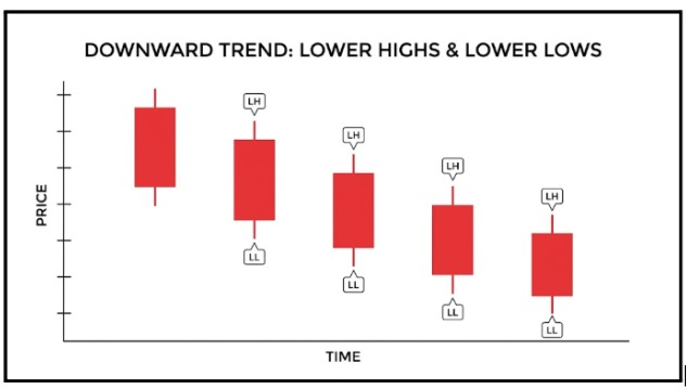और अगर मार्केट Lower Highs + Lower Lows बना रहा है, तो ये Downtrend होता है।