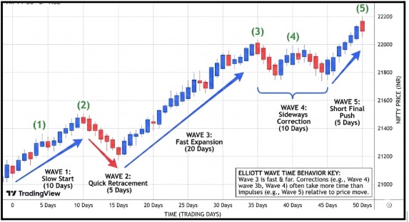 Markets move in rhythm. Impulse waves often expand quickly. Corrective waves take longer.