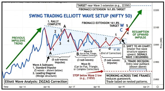 - Nifty 50 position trades: Weekly and daily for trend direction, 4-hour for wave structure.