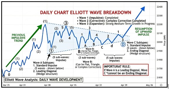Bank Nifty is far more volatile. RBI decisions, banking sector news, and global interest rate changes can distort wave structures quickly.