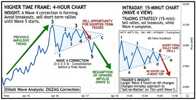 Expiry days also matter. In the last two days before weekly or monthly expiry, short-term wave counts often get distorted by options activity. It is better to rely on the daily chart during these periods.